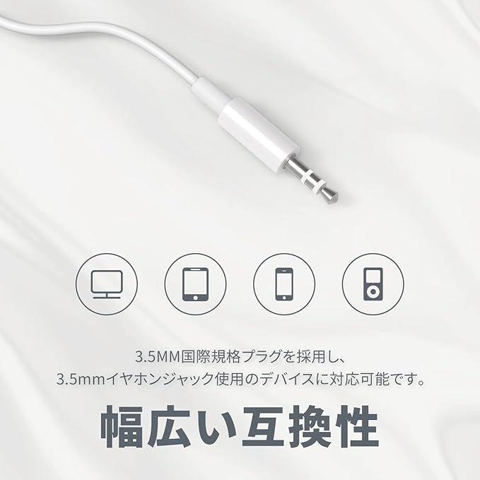 TOMPOL【2025音質強化バージョン】 イヤホン 有線 マイク付き 3.5mm インナーイヤー型 通話可能 音量調整 騒音低減 PC パソコン 4極 白 a