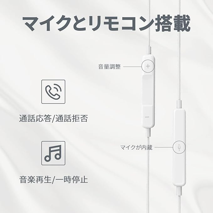 【有線イヤホン&高品質音楽】有線イヤホンはBluetoothイヤホンよりも高解像度の音を伝送することができます、高音準、中音が甘く、低音が重いことを絶妙に解釈する。半入耳式のデザインが耳にフィットし、より良い臨場感をもたらし、音楽を最大限に楽しむことができます。