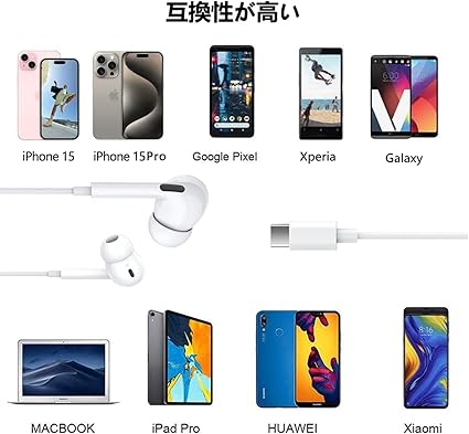 Kenocty【2024年新登場】タイプc イヤホン 有線 Type C USB C 重低音 マイク付き 通話対応 音量調整 コンパクト iPhone 16/15/Pixel/Xperia/Galaxy/iPadなどに対応 a
