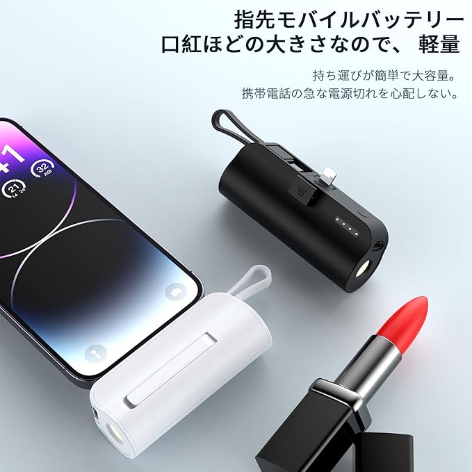 モバイルバッテリー 軽量 5000mAh 超小型 PSE認証済 持ち運び便利 2台同時充電 直接充電 残量表示 Type-C入力 コンパクト USB-Cコネクター内蔵 防災グッズ/出張/緊急用/旅行 (pink) a