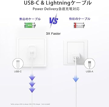 【究極の耐久性&こだわり素材】弊社のタイプC ライトニングケーブルは高品質のTPE素材で作られ、USB側先端に保護層を追加し、数千回以上の