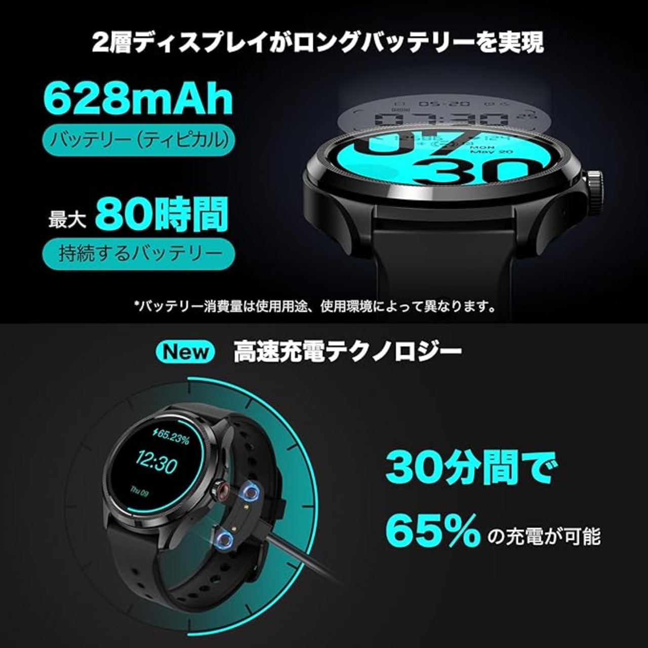 【最新OSシステムとチップ搭載】:最新Wear OS by Googleと最初Snapdragon W5+ Gen 1 ウェアラブル プラットフォームを搭載したスマートウォッチ。より速く、よりスムーズな操作性と接続性を可能にしました。安心の2G RAM + 32G ROMメモリー。