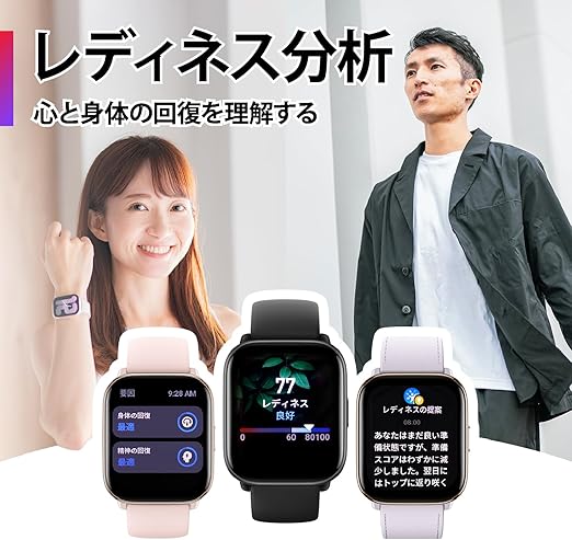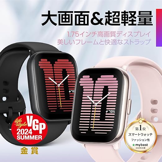 【軽量&スタイリッシュなデザイン】Amazfit Activeは、アクティブなライフスタイルに合った超軽量で磨かれたアルミニウム合金のデザインです。ボディはわずか27gで、コンパクトさ、快適さ、強度に妥協はありません。【1.75インチHD AMOLEDディスプレイ】画面対本体比率73%で、390×450ピクセルと341 ppiの高解像度を提供し、常に表示が可能なAlways-onディスプレイでいつでも鮮明な視覚体験が楽しめます。【標準的な使用で最大14日間バッテリー持続】※バッテリー持続時間は、