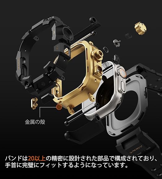 【一体型バンドカバー・対応機種】アップル・ウォッチ・ウルトラ 49mm。フレームの一体化強化デザインは、従来の分離式アップルウォッチケースと違い、衝撃を受けても合理的分散し、強きインパクトからapple watch本体「含まれません」を守ります。