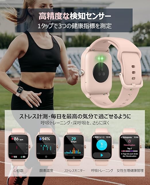 スマートウォッチ【2024革新初売り Bluetooth5.3通話】電話かけ 1.8インチ大画面 Alexa音声 活動量計 iPhone アンドロイド対応 腕時計 万歩計 心拍数 酸素濃度 消費カロリー 100種類スポーツ 着信通知 睡眠/健康管理 ストレスモニター 呼吸訓練 文字盤設定 IP68防水防塵 スマートバンド 長持ちバッテリー レディース プレゼント 技適認証済 (ピンク) a