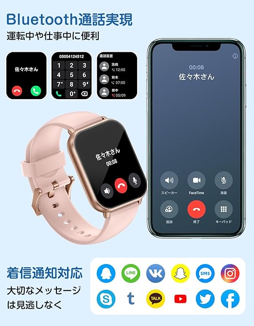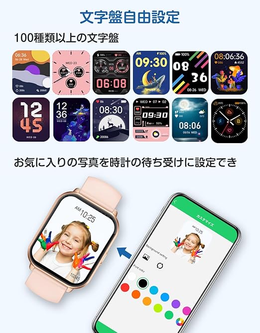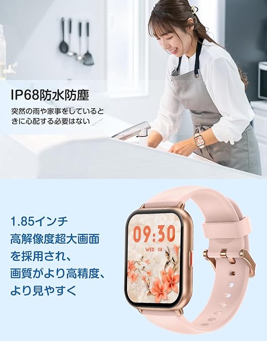 【1.85インチHD大画面&カスタマイズ文字盤】新登場のスマートウォッチは240*284pxの高解像度1.85インチ大画面を採用され、画質がより鮮明になり、より高精度な大画面で文字を表示されます。今までにない快適な視覚と操作性を実現します。実用性とファッション性を兼ね備えており、ビジネス/カジュアル/スポーツシーンのシーンで活躍、男女問わず使えるデザインです。本体の文字盤を搭載する以外、アプリで300種類以上の文字盤をダウンロードできるし、家族、恋人、アイドル及びペットなどの好きな写真を文字盤と