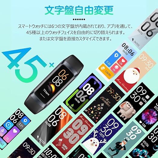【多種類文字盤】 スマートウォッチには6つの文字盤が内蔵されており、アプリを通して、45種以上のウォッチフェイスを自由的に切り替えられます。 または文字盤を直接カスタマイズできます。