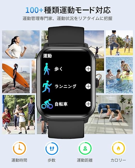 【Bluetooth5.3・通話可能・SOS緊急連絡】スマートウォッチ には高性能スピーカーとマイクが内蔵され、ペアリングするだけで通話することができます。運動中や仕事中にも携帯電話を出す必要がありません。最新世代のBluetooth5.3を採用して、Bluetooth4より通信範囲・接続の安定性が飛躍的に向上しました。音声アシスタントも付き、スマホのSiriを呼び出すことは可能。また、緊急事情がある時には、SOS機能より緊急連絡も実現できます。