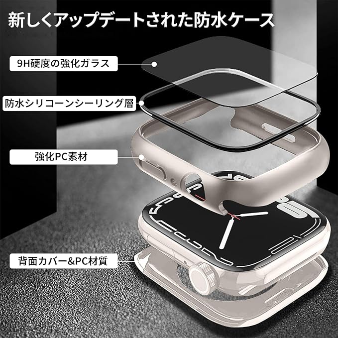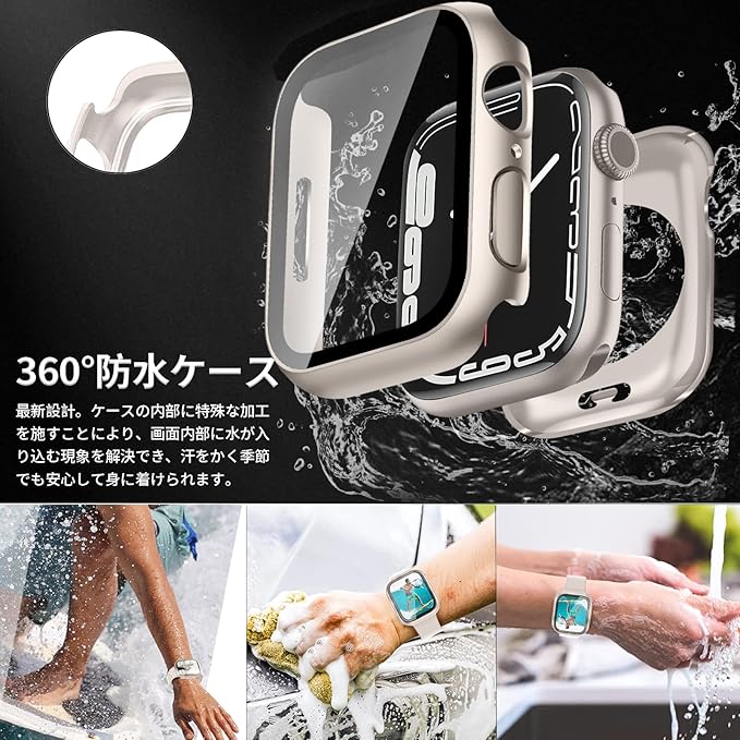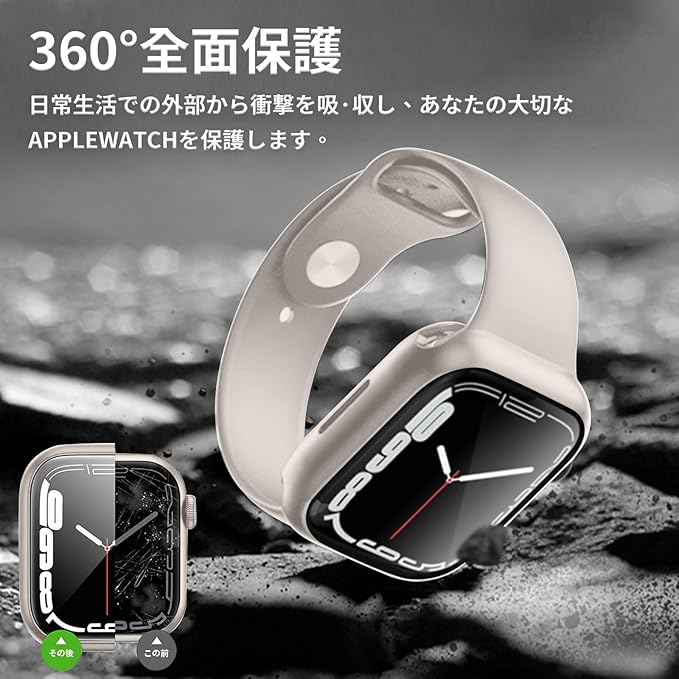 【2重構造、ダブル保護】今までの保護ケースを基に改良し、防水機能が向上しました。耐久性と柔軟性にPC素材+硬度9Hの強化ガラス、背面のハードフレームと組み合わせて、360フルボディ保護、偶発的な落下から時計を保護します。