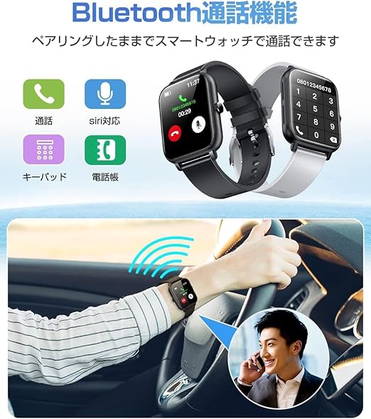 スマートウォッチ 高齢者向け 見やすい大画面 1.7インチ 日本語表示 通話機能 着信通知 天気予報 活動量計 健康管理 Line通知 iPhone Android対応 IP68防水 生活防水 プレゼント 長持ちバッテリー 敬老の日対応 a