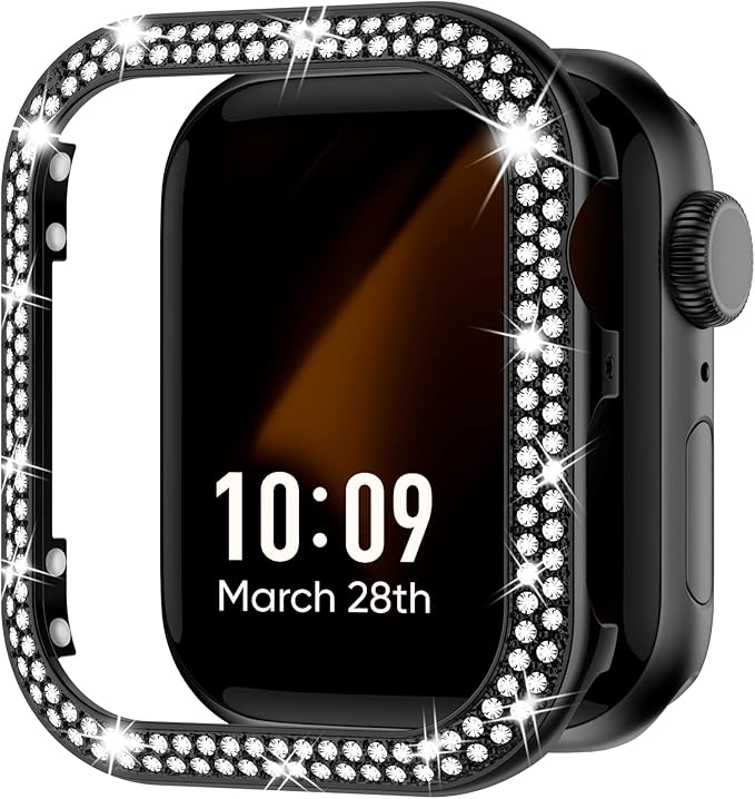 Missair コンパチブル アップルウォッチ カバー キラキラ ステンレス 45mm Apple Watch ケース 金属 ダブルダイヤモンド アップルウォッチ 飾りフレーム Series 8 7に対応 オシャレ レディース ブラック 45mm(液晶フィルムなし) a