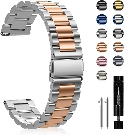 [CeiBand] バンド 18mm 20mm 22mm ステンレス製 時計バンド 交換ベルト 金属ベルト メタルストラップ スマートウォッチバンド クイックリリースベルト バタフライバックル付き 調整工具付 - シルバー/ローズゴールド a