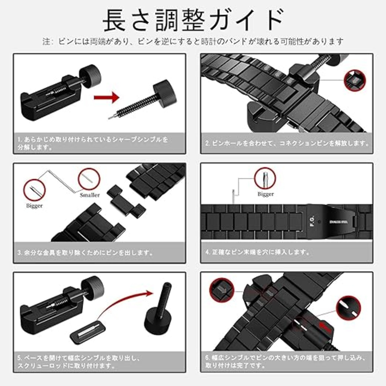 高級な材料:弊社のメタルステンレス製の時計バンドは高い品質の304Lステンレススチールで作られており、真空メッキは変色せず、耐摩耗性は非常に良好です。高品質ポリッシュドステンレススチール、さびれにくく、通気性がよく、敏感肌にも安全です。そのため、錆びにくく耐久性に優れ、時計バンドを長期間使用することができます。ご注意:ニッケルアレルギーのあるお客様は慎重に購入してください。(注文する前に、販売者とブランド名のインフォメーションを確認お願いします。)