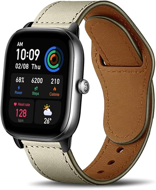 HeeNia 20MM レザーバンド Amazfit Active 2 Square/Active 2/Active/GTR Mini/GTS 4/GTS 4 Mini/Bip 3/3 Pro 対応 バンド 革 ストラップ スポーツバンドGarmin vivomove Trend/Venu Sq 2 用 時計ベルト (アプリコット) a