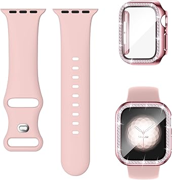 [Missair] コンパチブル Apple Watchと互換性のあるバンド シリコン アップルウォッチ バンド Apple Watch キラキラ カバー付き 互換用のApple Watch バンドとケース 一体型 全面保護 ダイヤモンド 光沢感 オシャレ レディース Series 9 8 7の45mmに対応 a