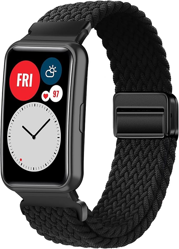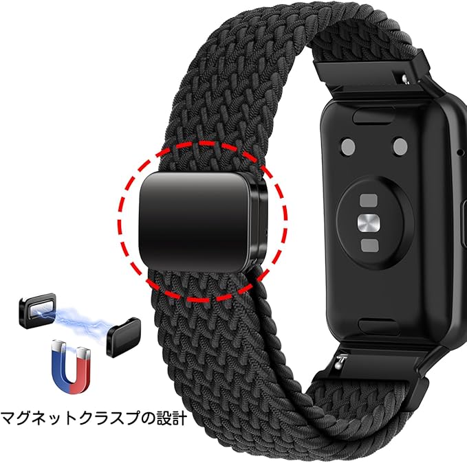 [ULIGADUO] 交換用ベルト マルチカラーのナイロン編組 マグネットクラスプ For HUAWEI WATCH FIT Special Edition スマートウォッチ対応