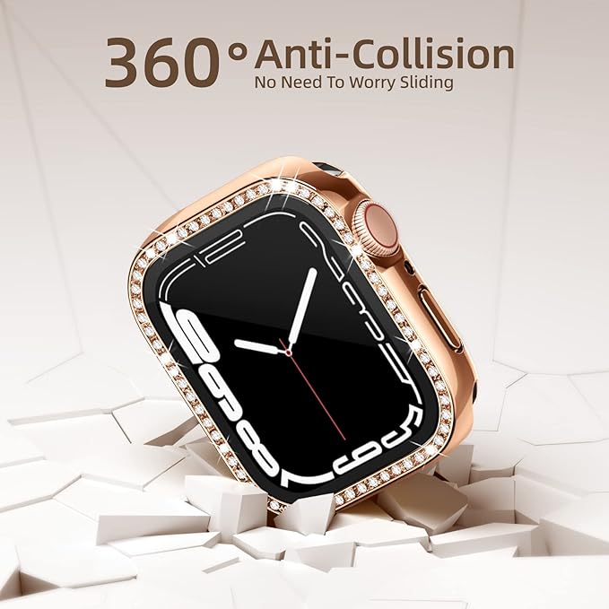 360度防水設計 Recoppa コンパチブル Apple Watch ケース 44mm キラキラ アップルウォッチカバー 防水ケース Series 6 5 4 SEに対応 ガラスフィルム付き 一体型 IP68完全防水 ダイヤモンド 光沢感 オシャレ レディース ローズゴールド 44mm a