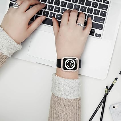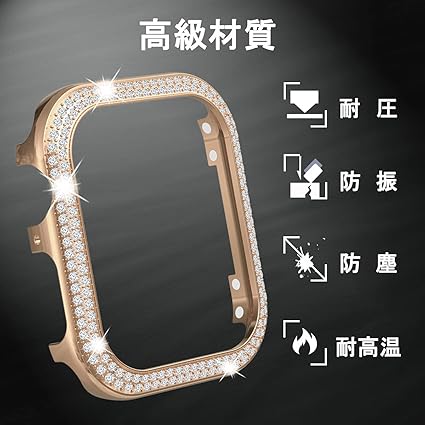 NINKI コンパチブル アップルウォッチ カバー 40mm キラキラ ステンレス ケース 金属 合金製 ダブルダイヤモンド 飾り フレームのみ 可愛い Apple Watch 40mm シリーズ SE2 6 5 4 SE SE2023 に対応 カバー(ローズゴールド) a
