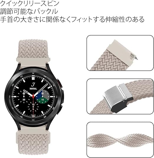 編組伸縮性腕時計バンドGalaxy Watch 6/6 Classic/5/4/4 Classicバンド 40mm 42mm 44mm 46mm 43mm 47mm/5 Pro 45mm/3 41mm/Active 2用編組ナイロンループバンド20mm(工具が要らなく、気軽に差し替える)、スターライト a