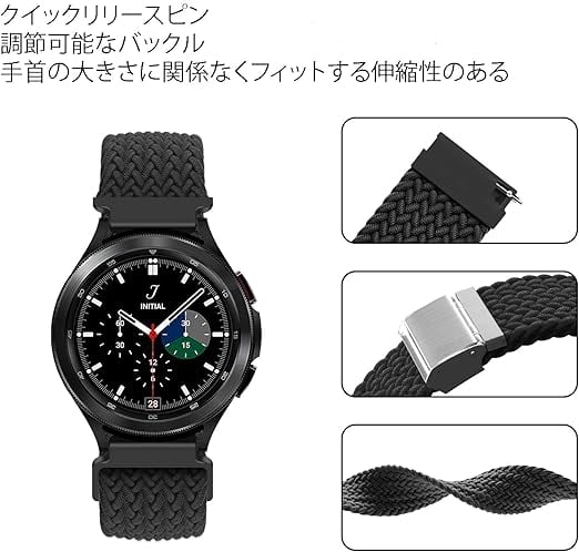 編組伸縮性腕時計バンドGalaxy Watch 6/6 Classic/5/4/4 Classicバンド 40mm 42mm 44mm 46mm 43mm 47mm/5 Pro 45mm/3 41mm/Active 2用編組ナイロンループバンド20mm(工具が要らなく、気軽に差し替える)、黒 a