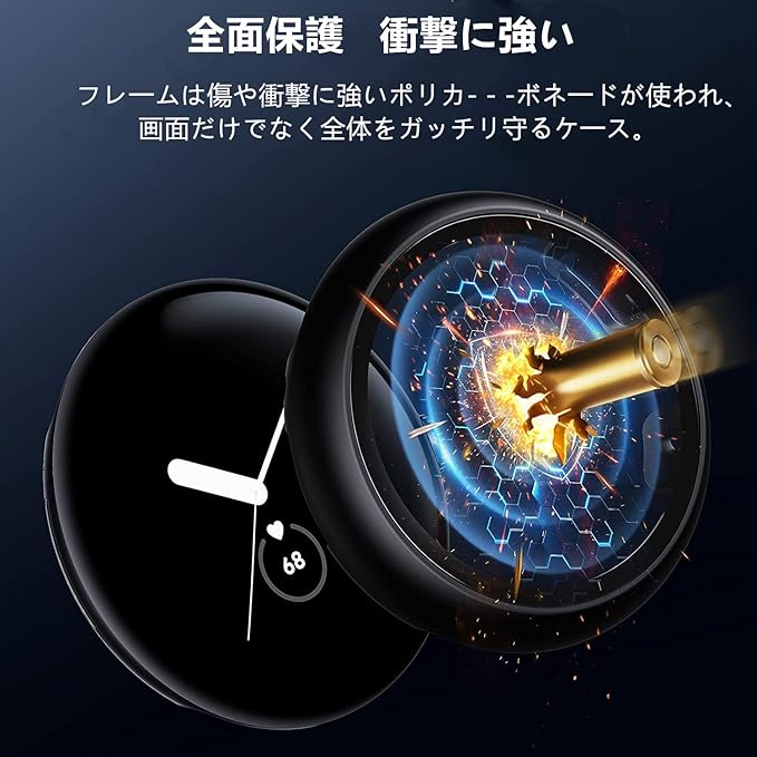 【対応機種】Google Pixel Watch 2/Pixel Watch 1専用保護ケース。ピクセルウォッチの操作性を損ねない、こだわり抜いた究極的な設計、操作性を追求し、最も適したサイズに作られております。各ボタン部分への操作性、アクセスしやすさを考慮した最適な設計。