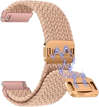 [LanQii] バンド 20mm 対応 22mm 対応 バンド 交換ベルト ナイロン バンド 編み込み 磁気吸着取り付け スポーツ用 弾力性 長さ無段階調整 柔軟 防汗 通気 夏向け 男女兼用 簡単取り付け コンパチブル 20mm 対応 バンド - ミルクティー(20mm) a
