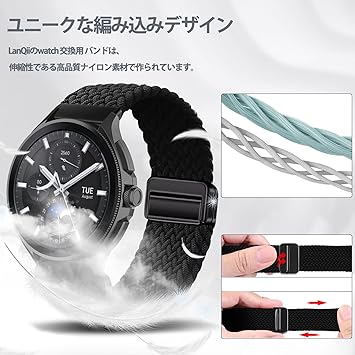 【ユニークな編み込みデザイン】伸縮性のある高品質なナイロン糸素材で、高精度な編み込む技術でバンドを織って、特殊な加工で糸が抜けにくいし、何度の着脱も変形にくいです。軽量で柔らかいし、滑らかなバン