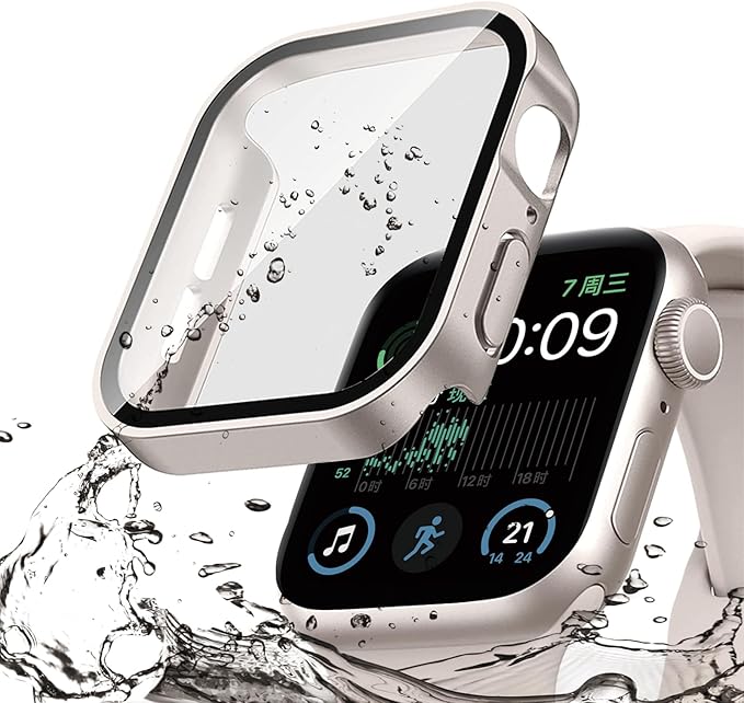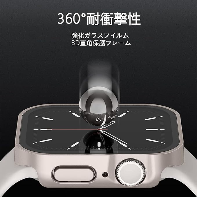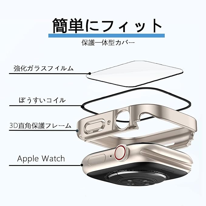 【2025新型】FALSAD Apple Watch カバー 46mm/42mm/44mm/40mm/45mm/41mm 対応 アップルウォッチ Series10/9/8/7/6/5/4/Se/Se2保護ケース、新デザイン3D直角エッジ PC+ガラス画面 防水 耐衝撃 超薄型 軽量 高透過率 高タッチ感度 指紋防止 装着簡単 一体型 全面保護(iWatch 40mm スターライト) a