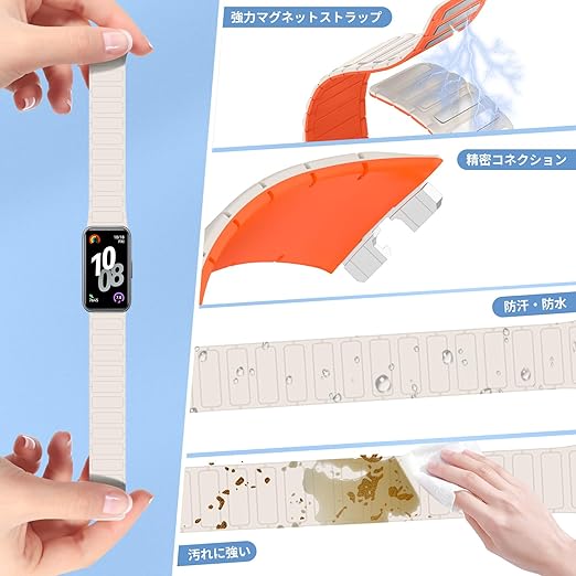 [KONXISA] 交換バンド HUAWEI Band 10 / 9 / 8 対応 バンド 磁気付き柔らかいシリコンベルト 長さ調節 軽量、快適、耐久性、防水性 防汗 男女兼用 スタイリッシュ 腕時計ベルト(スターライトカラー&オレンジ) a