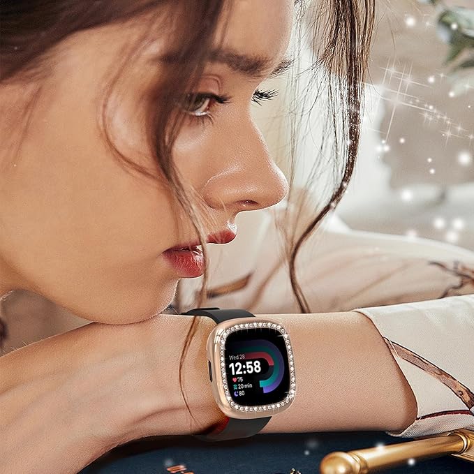 Simpeak 5個セット Fitbit Versa 4/Sense 2 対応 ケース、PC素材 きらきら プロテクター、簡単 ぴったりフィット サイドプロテクション a