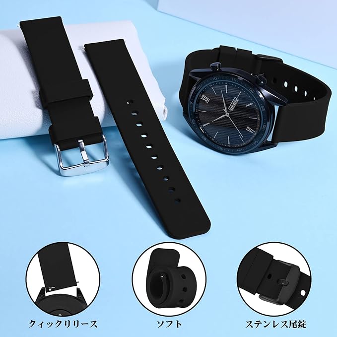[WOCCI]ラバーベルト シリコン12mm~24mm 防水時計替えベルト Quick Release ゴム腕時計バンド a