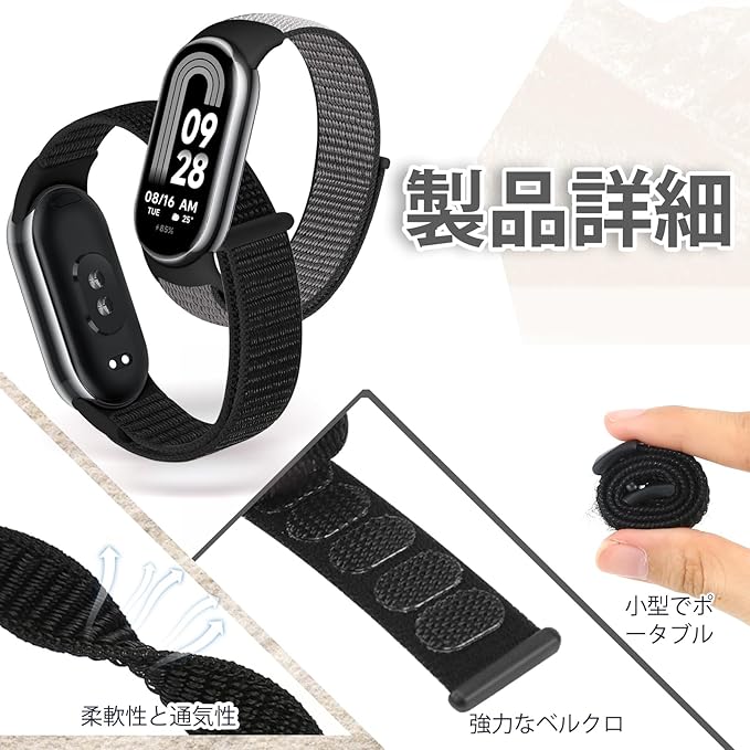 [Acortjl] ナイロン時計バンド Xiaomi Smart Band 10/9/8 と互換性あり 女性 メンズ ソフト 調節可能 通気性 スポーツ ソロループ 時計ストラップ 交換用リストバンド Xiaomi Mi Band 10/9/8 用