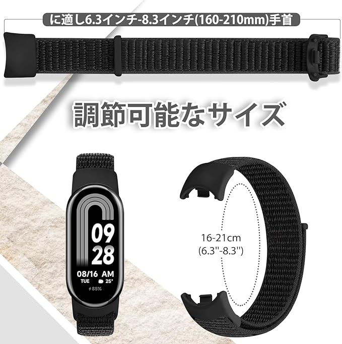 [Acortjl] ナイロン時計バンド Xiaomi Smart Band 10/9/8 と互換性あり 女性 メンズ ソフト 調節可能 通気性 スポーツ ソロループ 時計ストラップ 交換用リストバンド Xiaomi Mi Band 10/9/8 用 a