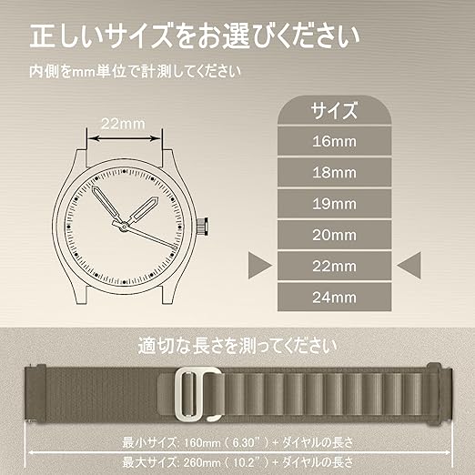 [CeiBand] 22mm アルパインループ バンド 替えベルト 22mm 時計バンド スポーティーナイロン 時計ベルト スマートウォッチ交換用バンド ベルクロバンド 軽量 柔らかい 通気性 耐汗性 マジックテープ スポーツバンド 交換バンド (オリーブ色) a