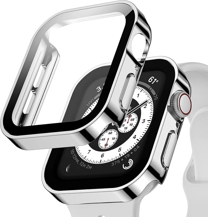 Singiuzoo Apple Watch 用 防水ケース 45mm 44mm 41mm 40mm アップルウォッチ ケース 3D直角エッジデザイン 保護 アップルウォッチ Series 6/SE/5/4 カバー ガラスフィルム 一体型 高透過率 硬度9H 一体型 光沢 軽量 全面保護 頑丈 耐衝撃 装着簡単 iwatch (44mm,光沢のシルバー) a