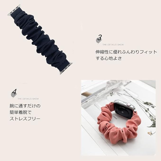 HYUNGJ 【S/Mサイズ】 アップルウォッチ series 10 42㎜ 46㎜ バンド シュシュ おしゃれ ベルト apple watch series 9 8 7 6 5 4 3 2 1 SE スポーツ 可愛 レディース アクセサリー 41 38 40 42 44 45 49 ㎜ band 時計ベルト 時計バンド 替えベルト