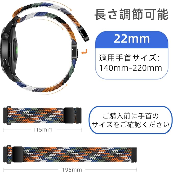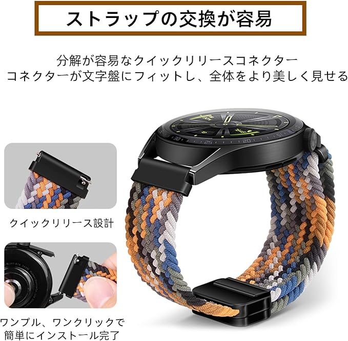時計バンド22mm、クイックリリース、スマートウォッチベルト22mmに対応Huawei Watch GT5/4/3/2 46mm、ナイロン時計ベルト磁気バックル付きに対応Amazfit Watch Bip 6/5/GTR 4、に対応Garmin Forerunner 265/255/Venu 3/2交換用バンド a