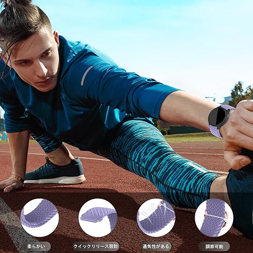 [CeiBand] ナイロンバンド 22mm 対応 時計バンド 編み 伸縮性 交換ベルト 18mm 20mm 22mm サイズあり 通気性 柔軟性 クイックリリース 腕時計ベルト スマートウォッチバンド ベルト (パープル 22mm) a