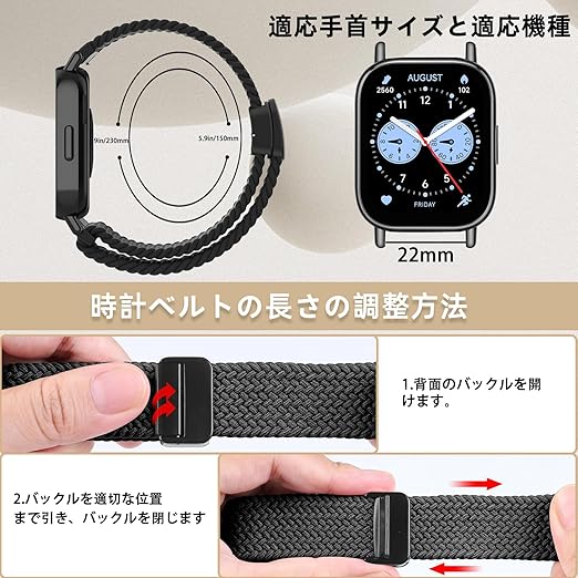 【対応機種】YealRed ナイロン交換バンド For Xiaomi Redmi Watch 5 Lite/Redmi Watch 5 Active対応、For Xiaomi Watch S4/Watch S3/Watch S4 Sport/Watch 2/Watch S1 Pro/Mi Watch S1 Active/Mi Watch S1/Watch 2 Pro/Mi Watch対応、22mmサイズのスマートウォッチに対応、ご購入前に時計のラグ幅と時計のサイズが適切かどうかをご確認ください。