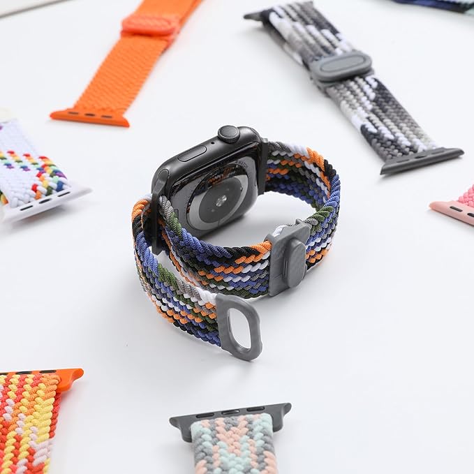[SQHYWJ] Apple Watch用バンド 編み込み 伸縮 調整可能 スポーツバンド 49mm 45mm 44mm 42mm 41mm 40mm 38mm スナップ ナイロン ベルト Apple Watch Seriesに対応 9 8 7 6 5 4 3 2 1 SE a