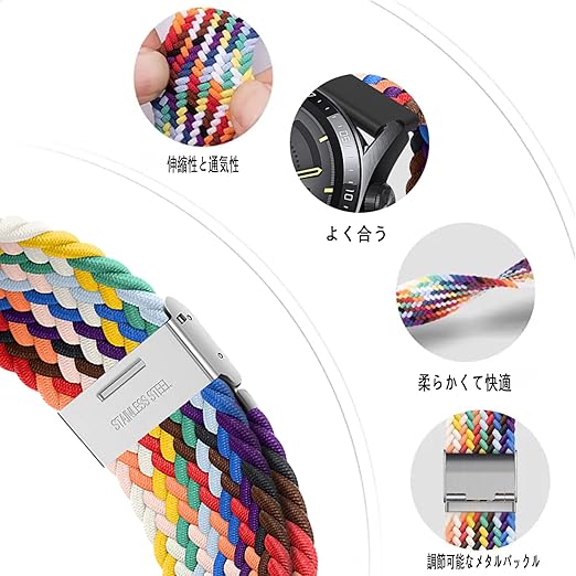 AGUPERFIT 時計バンド 20mm 22mm 無段階に調整なステンレスバックルブレイデッドソロループベルト ファッションで快適な伸縮性で通気性の良いクイックリリースストラップ 腕時計とスマートウォッチ換えバンド (22mm, ブラック) a
