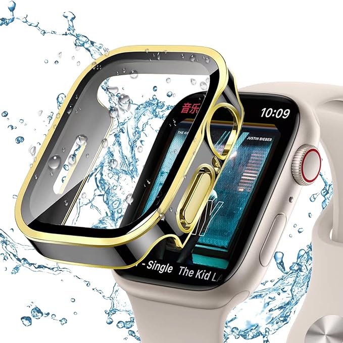 AIYYXX アップルウォッチ カバー40mm 44mm 41mm 45mm対応 アップルウォッチ 本体 防水 一体型 新デザイン 3D直角エッジ 超薄型 PC+ガラス素材 高透過率apple watch カバーキズ防止 簡単に取り付け・取 全面保護 apple watch ケース(41mm,光沢防水のブラック&ゴールド) a