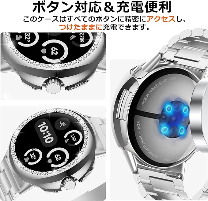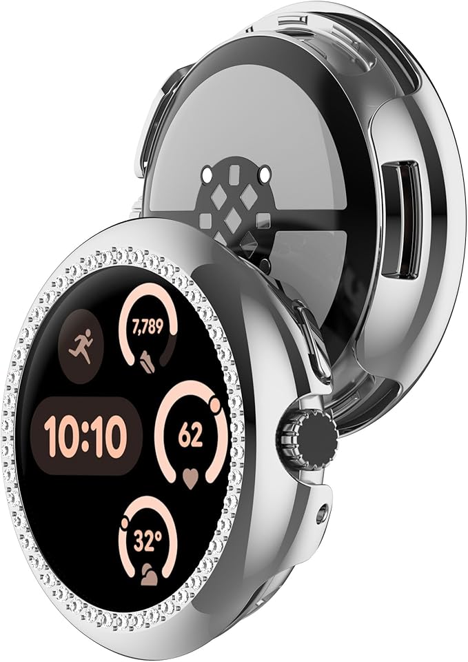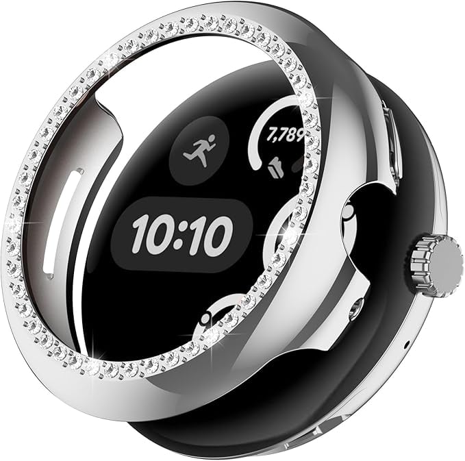 【NINKI】コンパチブル Google pixel watch series3 ケース キラキラ メッキ バンパー 45mm PC 軽量型 クリスタル ピカピカ 装着簡単 シンプル グーグルピクセルウォッチ シリーズ3 対応 (シルバー 45mm) a