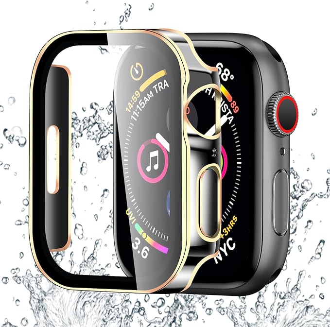 BELIYO 対応 Apple Watch ケース Series SE2/SE/6/5/4 アップルウォッチ カバー 防水ケース ガラスフィルム 一体型 3D直角エッジデザイン メッキ加工 Apple Watch カバー PC素材 軽量 二重構造 アップルウォッチ ケース 全面保護 高耐久 高透過率 装着簡単(40mm,光沢のブラック+ゴールド) a