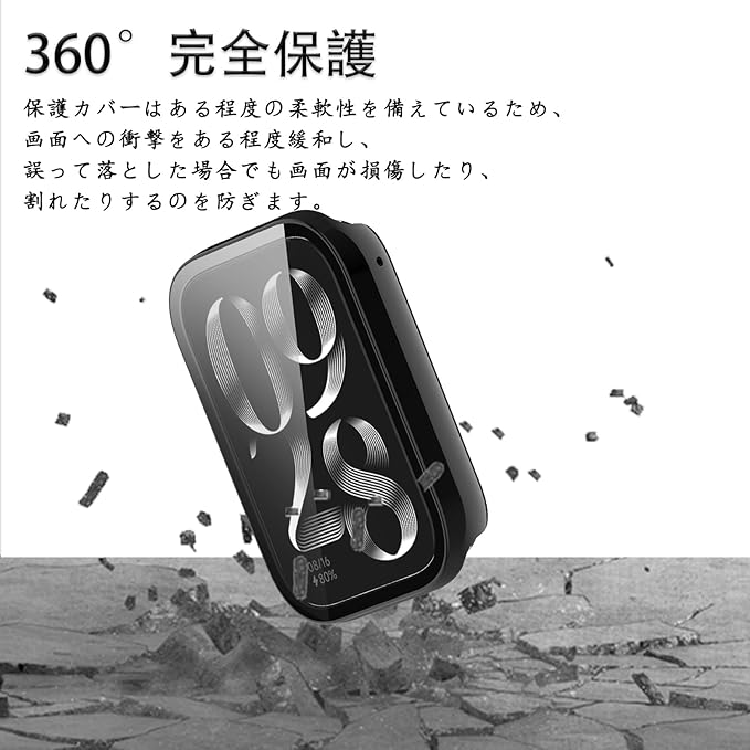 【全面保護カバー】高透明度の日本製ガラスと約1.3mmの薄さ、わずか2.13gの軽量なPC枠を採用。これにより、外部の衝撃から大切な[シャオミ] スマートウォッチ Band 9 Pro を守ります。硬度9Hの強靭な液晶部保護フィルムも備えています。さらに、透明度の高い液晶ガラス素材を使用しており、本来の明るくカラフルな画質を保ちます。