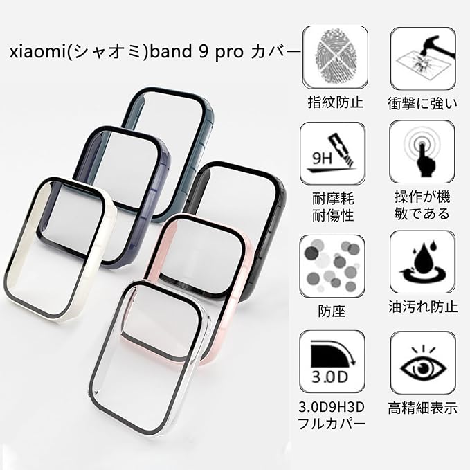 【全面保護カバー】高透明度の日本製ガラスと約1.3mmの薄さ、わずか2.13gの軽量なPC枠を採用。これにより、外部の衝撃から大切な[シャオミ] スマートウォッチ Band 9 Pro を守ります。硬度9Hの強靭な液晶部保護フィルムも備えています。さらに、透明度の高い液晶ガラス素材を使用しており、本来の明るくカラフルな画質を保ちます。