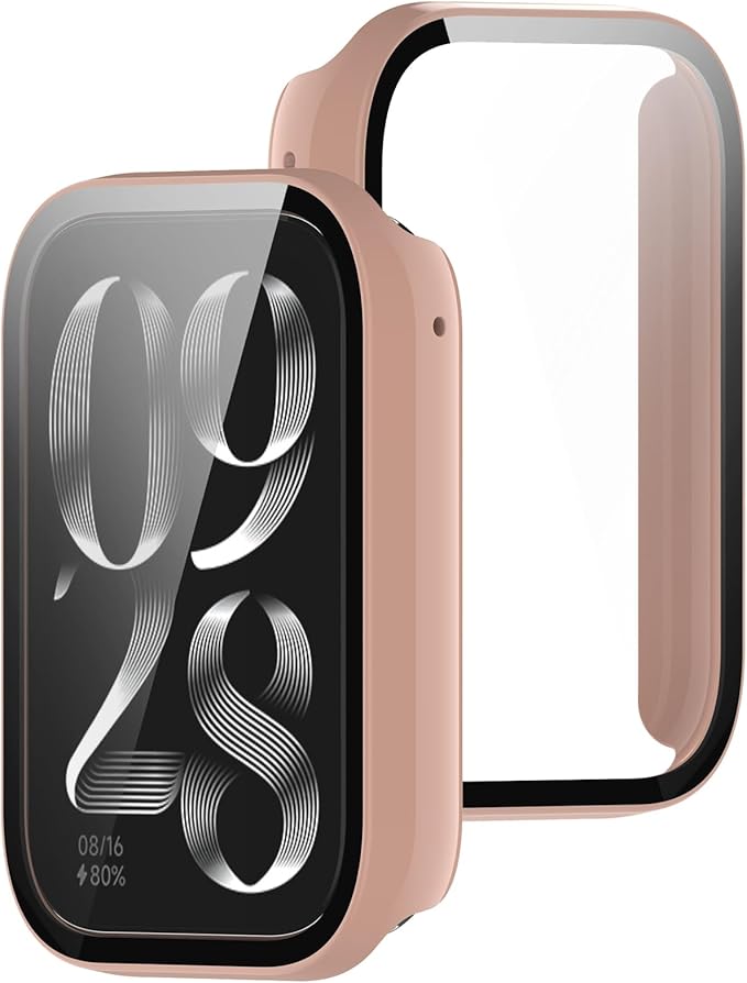 BUITFOU For シャオミ Band 9 Pro カバー xiaomi smart band 9 pro ケース 超薄型 PC+ガラス素材 一体型 xiaomi(シャオミ)band 9 pro ケース対応 全面保護 超薄型 装着簡単 耐衝撃 高透過率 指紋防止 傷防止(ピンク) a