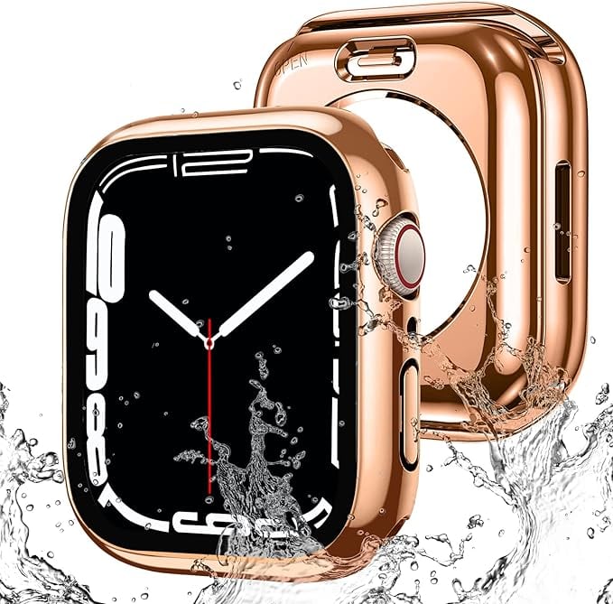【2024強化版】ELYBYYLE for Apple Watch ケース 44mm 40mm 防水ケース 360度全面防水 バンド 水泳・スポーツ専用 ガラスフィルム 一体型 apple watch 用 カバー 360フルボディ防水 アップルウォッチ ケース Apple Watch 6/SE2/SE/5/4 44mm対応 光沢のローズゴールド a