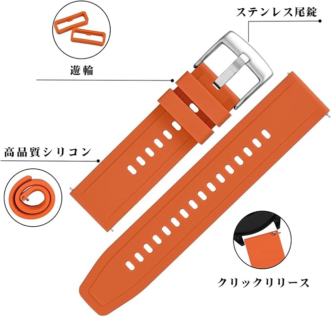 [BISONSTRAP] 腕時計バンド 18mm 20mm 22mm 24mmm スマートウォッチベルト シリコン 時計ベルトQuick Release 防水