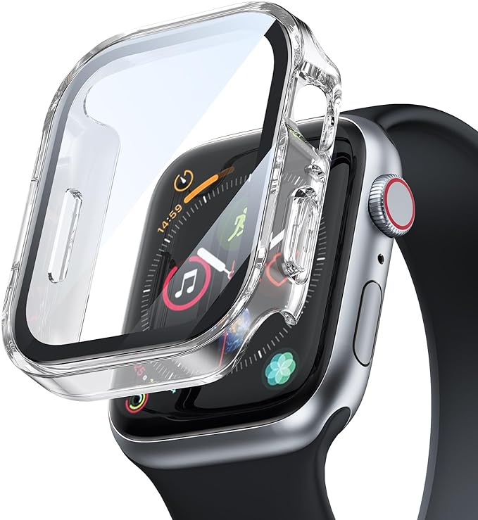 BUITFOU Apple Watch カバー Series 9/8/7 45mm 対応 アップルウォッチ用 ケース 防水 一体型 新デザイン 3D直角エッジ Apple Watch ケース対応 全面保護 超薄型 装着簡単 耐衝撃 高透過率 指紋防止 傷防止(45mm,光沢のクリア) a